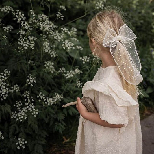 Busy Lizzie - Rosetthårklämma vit med prickar