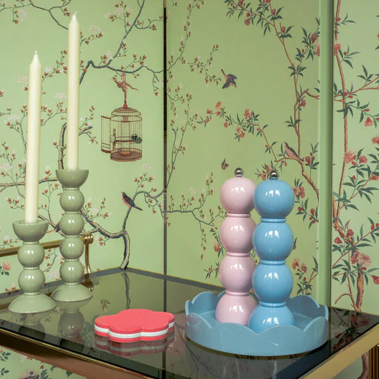 En exklusiv Addison Ross‑design i ljusrosa högglanslack och ikonisk spolform. Kvarnen levereras med både S‑ och P‑knopp i rostfritt stål, så du själv väljer om den används för salt eller peppar.