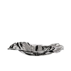 Denna skål från Alessi, kallad Port Round Basket, är tillverkad av rostfritt stål och har en minimalistisk och modern design. Den är designad av Lluís Clotet, som har hämtat inspiration från ett ihopskrynklat papper.