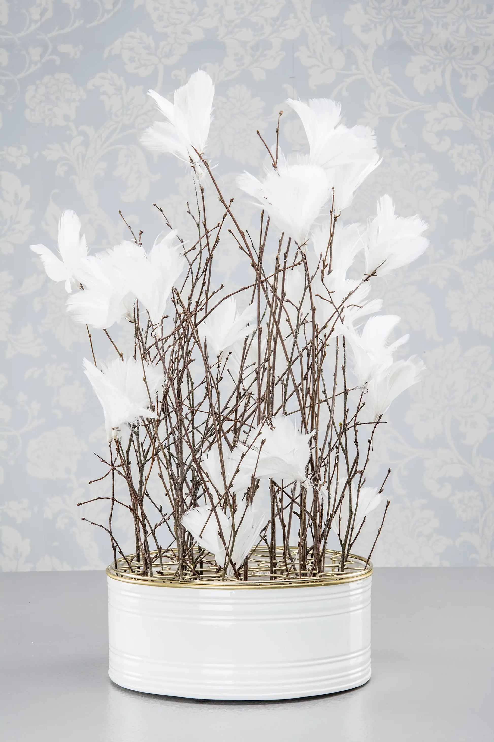 Alot Fjäder Trådad Blom Vit