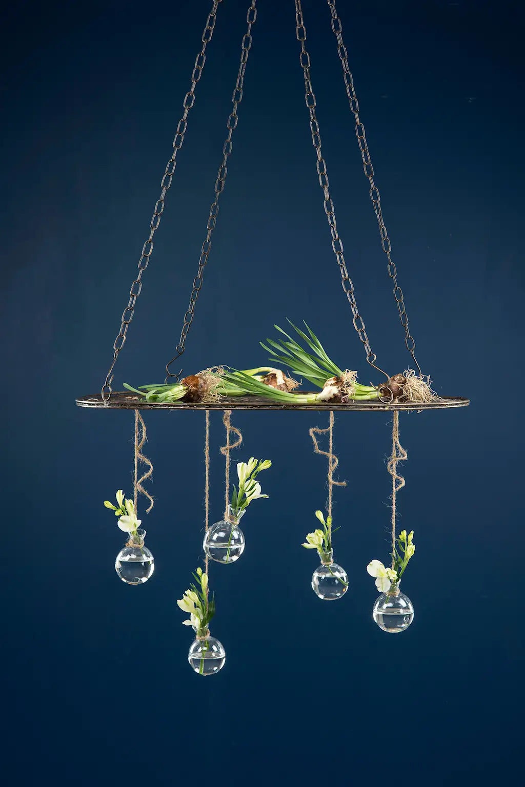 Alot Klotvas Boll Stående/Hängande Klar är en dekorativ glasvas med rund form som kan placeras stående på bord eller hängas upp med snöre eller metalltråd. Den klara glaskroppen ger ett luftigt och stilrent uttryck som passar både moderna och klassiska inredningsstilar. Vasen är idealisk för mindre blomsterarrangemang, torkade kvistar eller som en del av en hängande installation i fönster eller på vägg. Med sin mångsidiga design fungerar den lika bra som solitär dekoration som i grupp med andra vaser. Produkten är tillverkad av transparent glas och har en öppning som gör den enkel att fylla och rengöra.