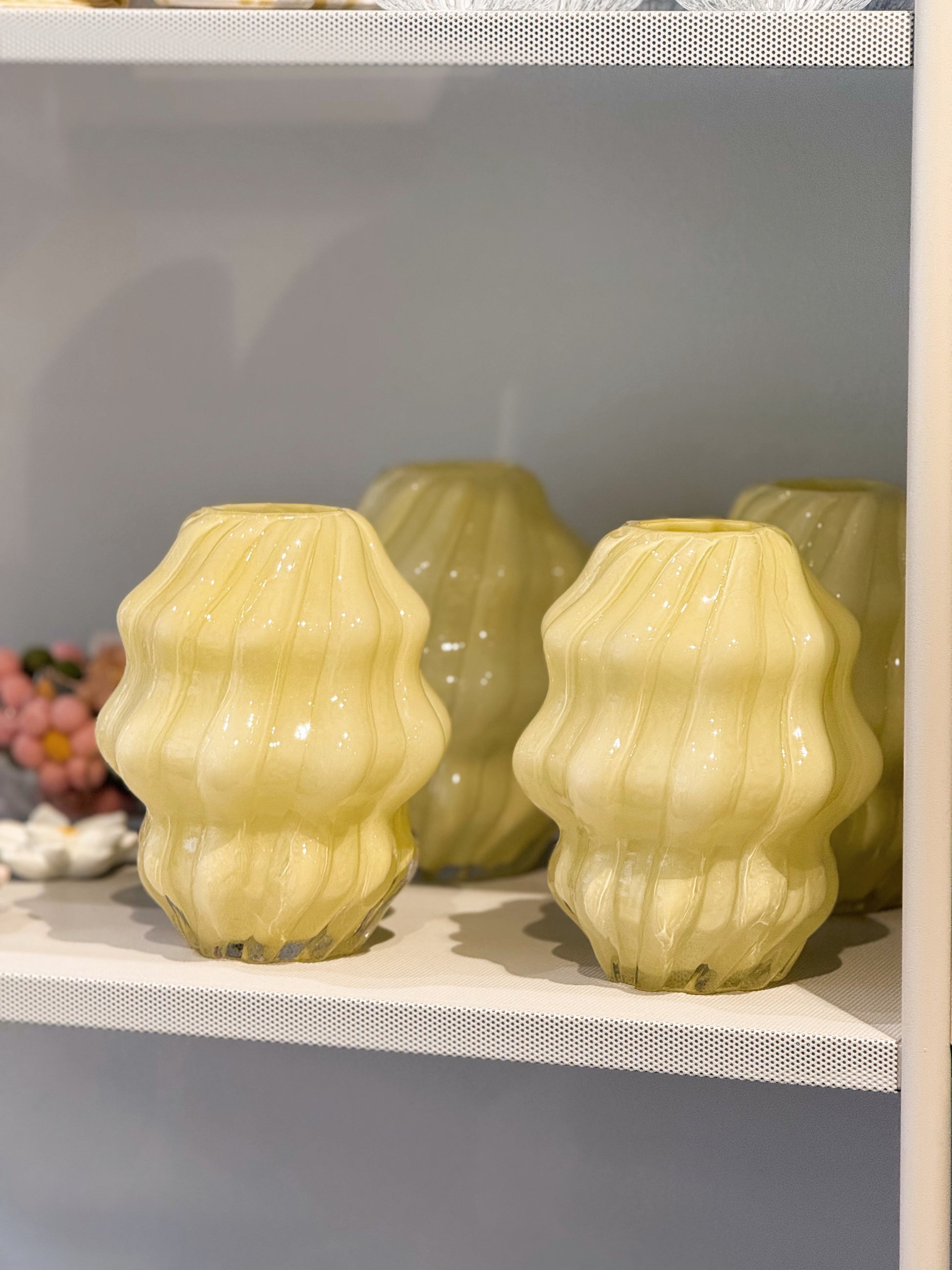 Aura är en vas med vågor och kurvor. För dig som vill ställa buketten i något med det lilla extra. Tillverkad i glas.