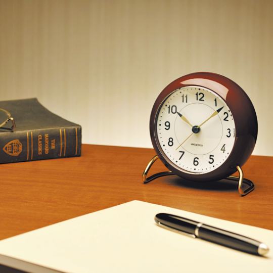 Den världsberömda arkitektens bordsur med alarm skapades 1939. Det grafiska utseendet och metallfoten med tydlig inspiration från stolarna Myran och Sjuan gör uret till en given presentidé för designälskare. Uret passar överallt i det moderna hemmet och med de uppdaterade funktionerna snooze och ljussensor är det ett effektivt väckarur på sängbordet.