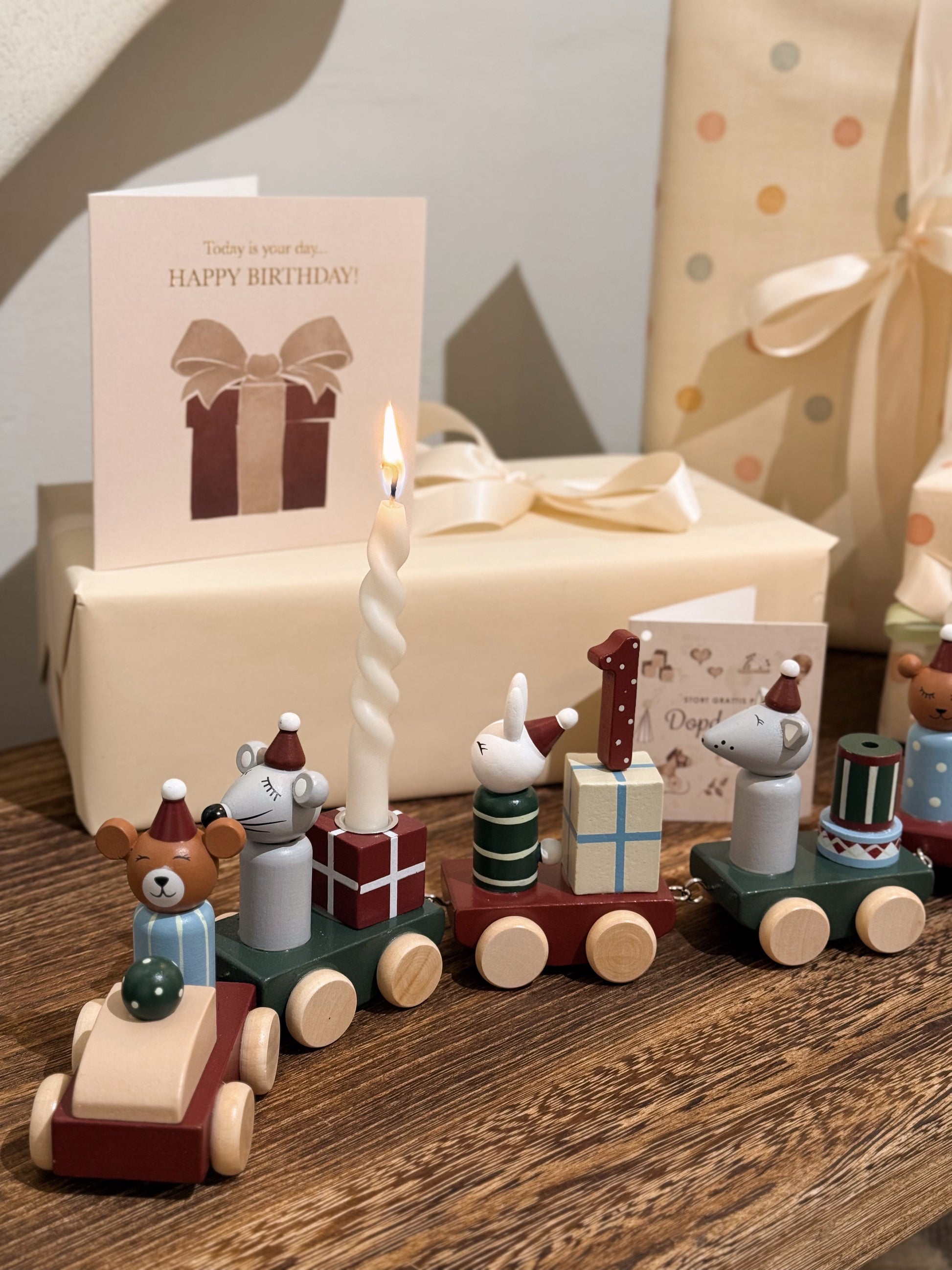 Fira med färg och fantasi! Junaid Födelsedagståg från Bloomingville är en underbar dekoration som gör varje födelsedag till ett minnesvärt ögonblick. Med sina glada figurer, livfulla färger och plats för små ljus blir tåget ett festligt inslag på kalasbordet – år efter år.