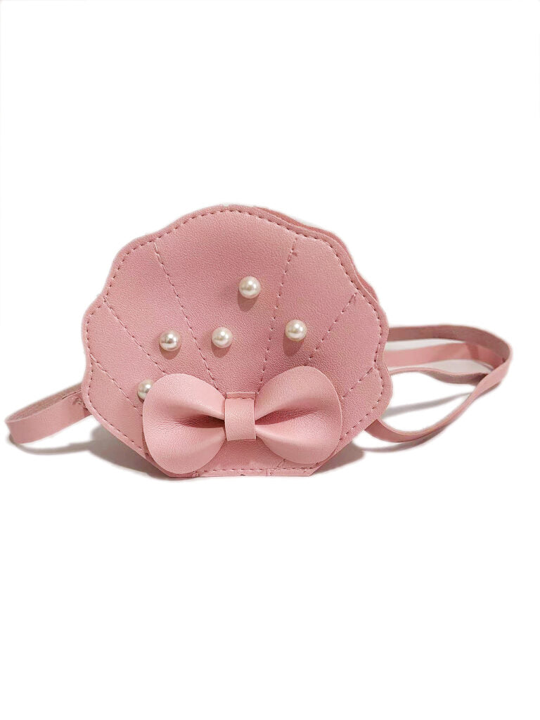Fin väska formas som en snäcka med pärlor och rosett detalj.