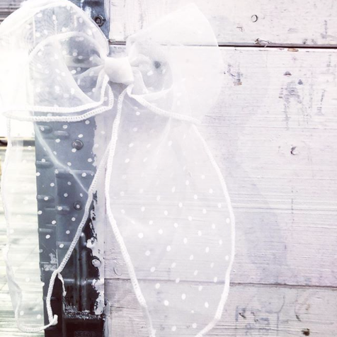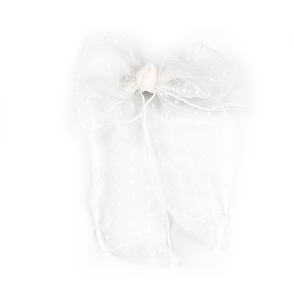 Hårklämma med rosett i vårat underbara organza tyg, dekorerat med prickar.