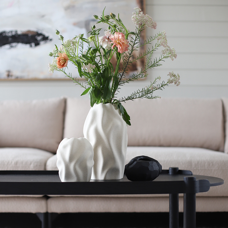 Denna vackra vas är inspirerad av vågmönstrade stränder med sin böljande struktur. Utmärkande för Drift-kollektionen är den grova, sandiga ytan.