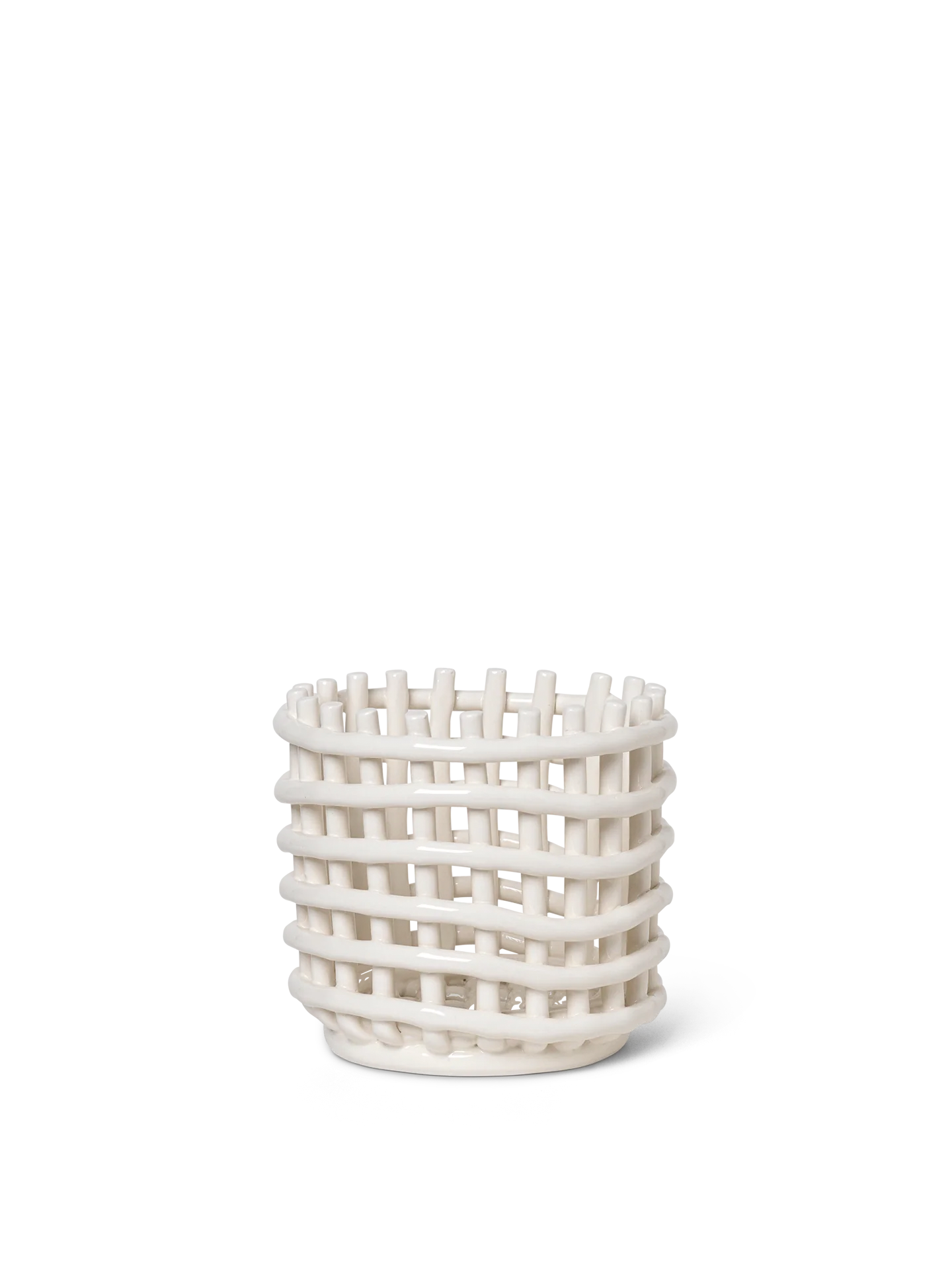 Genom att föra in den traditionella korgflätningstekniken i keramik återskapar våra handgjorda Ceramic Baskets den välbekanta känslan av flätade behållare. Denna multifunktionella design passar i alla rum och är en perfekt förvaringslösning för dina mest älskade föremål. Varje korg är skulpterad för hand och konstnärligt ojämn, vilket gör varje exemplar unikt.