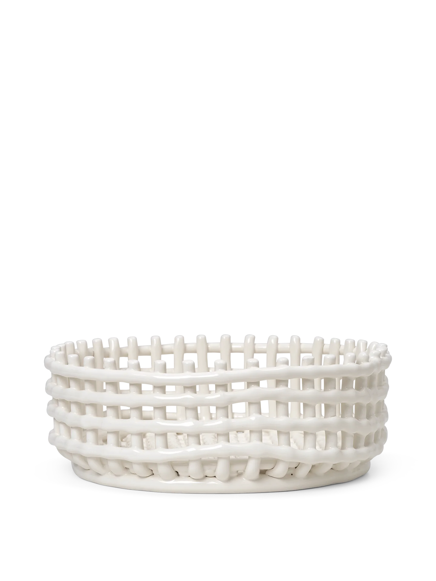 Ferm Living Ceramic Centrepiece är en elegant och mångsidig mittpunkt för alla dukningar, som kombinerar traditionell korgflätning med modern keramikdesign. Denna unika handgjorda skål återskapar den varma, taktila känslan av flätade korgar, men i ett tidlöst och hållbart stengodsmaterial. Perfekt som frukt- eller brödkorg och lika vacker som ett dekorativt inslag på bordet, blir den snabbt en självklar favorit i hemmet.