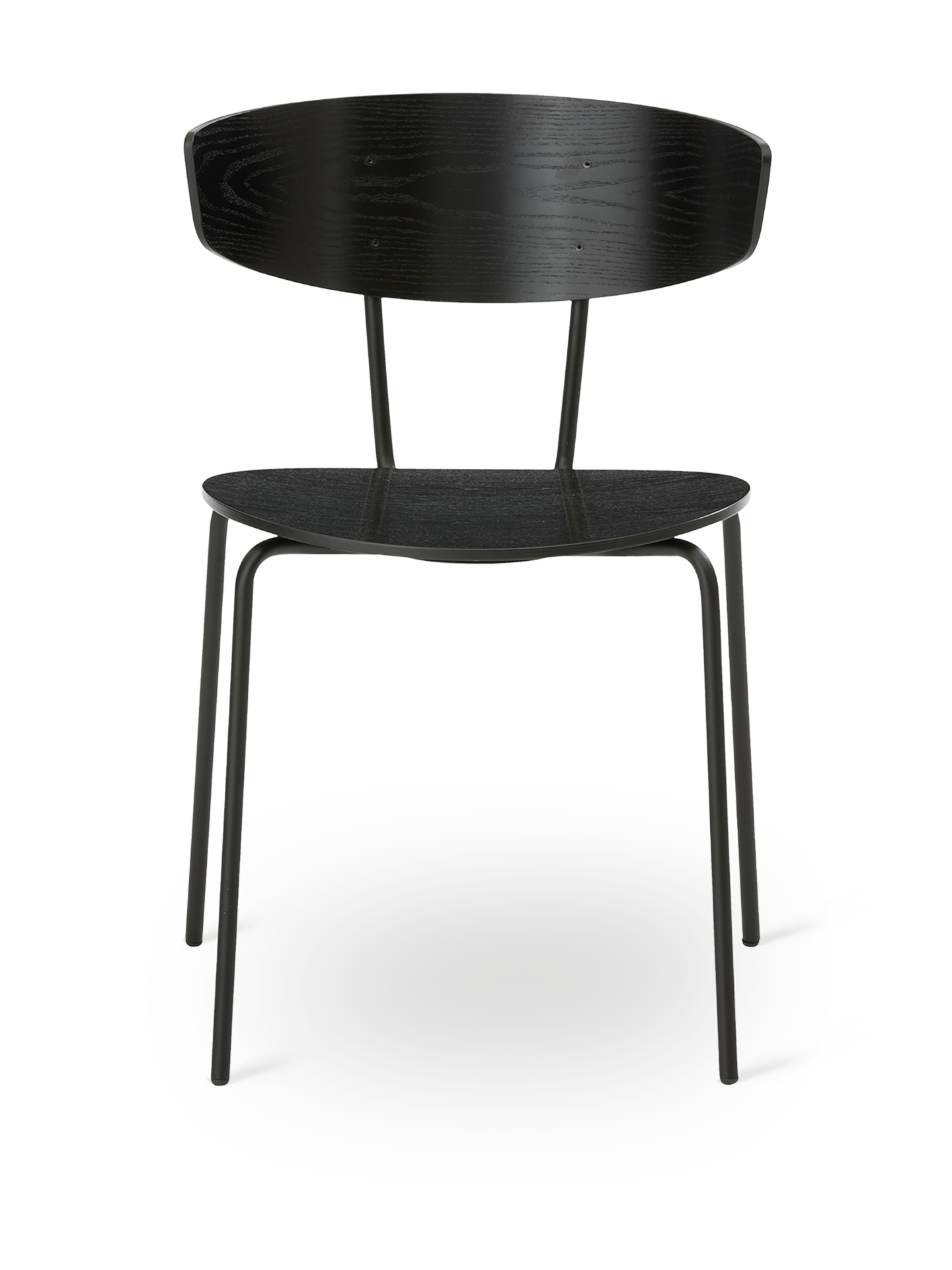 Herman Dining Chair - Black är elegant, välutformad och tillräckligt bekväm för att hålla dig sittande i timmar. Stolarna är tillverkad av FSC®-certifierad träfanér och pulverlackerat stål, är lätta att stapla och det breda, kurvade ryggstödet ger gott om stöd för ryggen och kan även användas för att vila armarna på. Som en trevlig detalj är vinklarna på ryggstöden i trä designade så att stolarna kan hängas från ett bord. På detta sätt kan du enkelt städa under bordet och stolarna tar inte upp plats när du inte behöver dem. Producerad i samarbete med den danska designstudion Herman Studio.