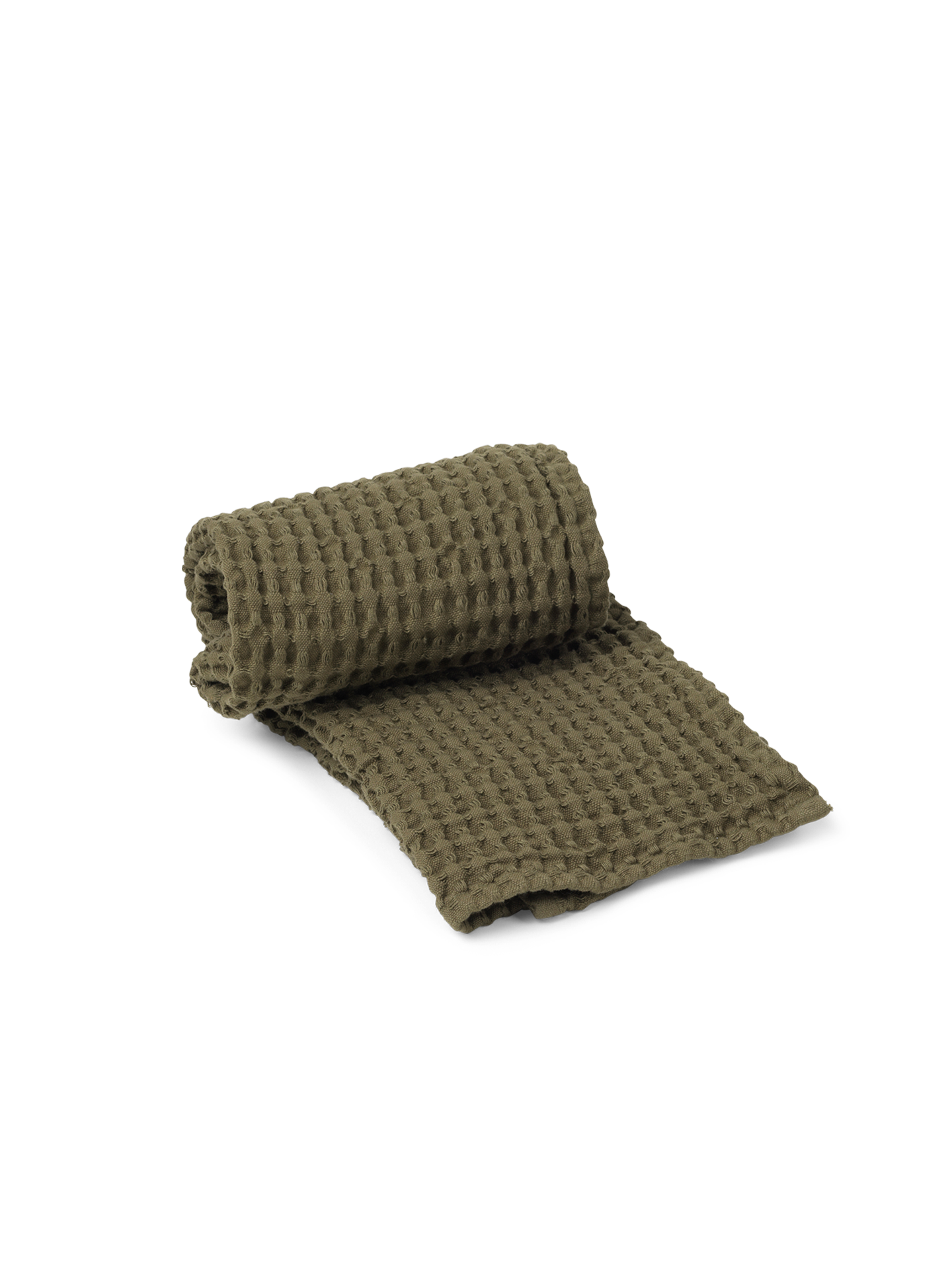 Unna dig själv, din familj och dina gäster den mjuka känslan av de ekologiska våffelhanddukarna. Handdukarna finns i olika färger med en jordnära, subtil färgskala – alla kombinerade med naturliga randiga webbingband. Handduken är tillverkad av 100% ekologisk och GOTS-certifierad bomull.