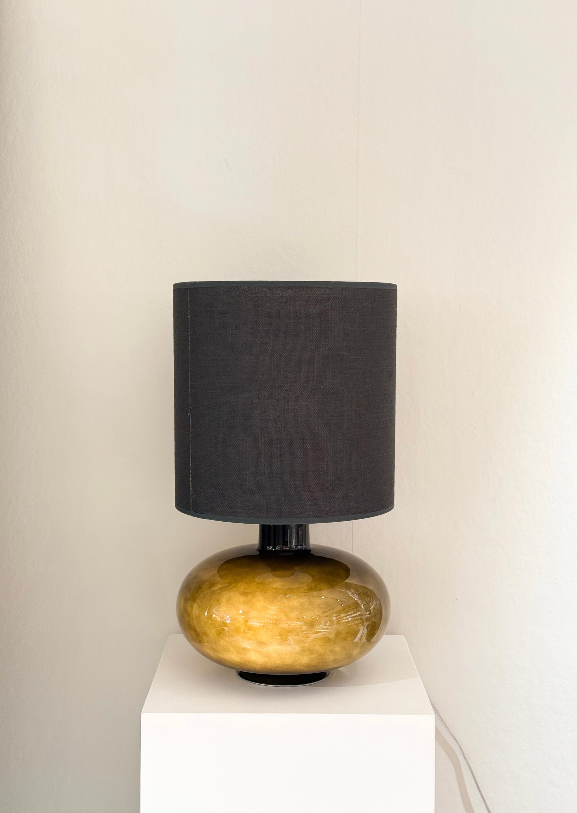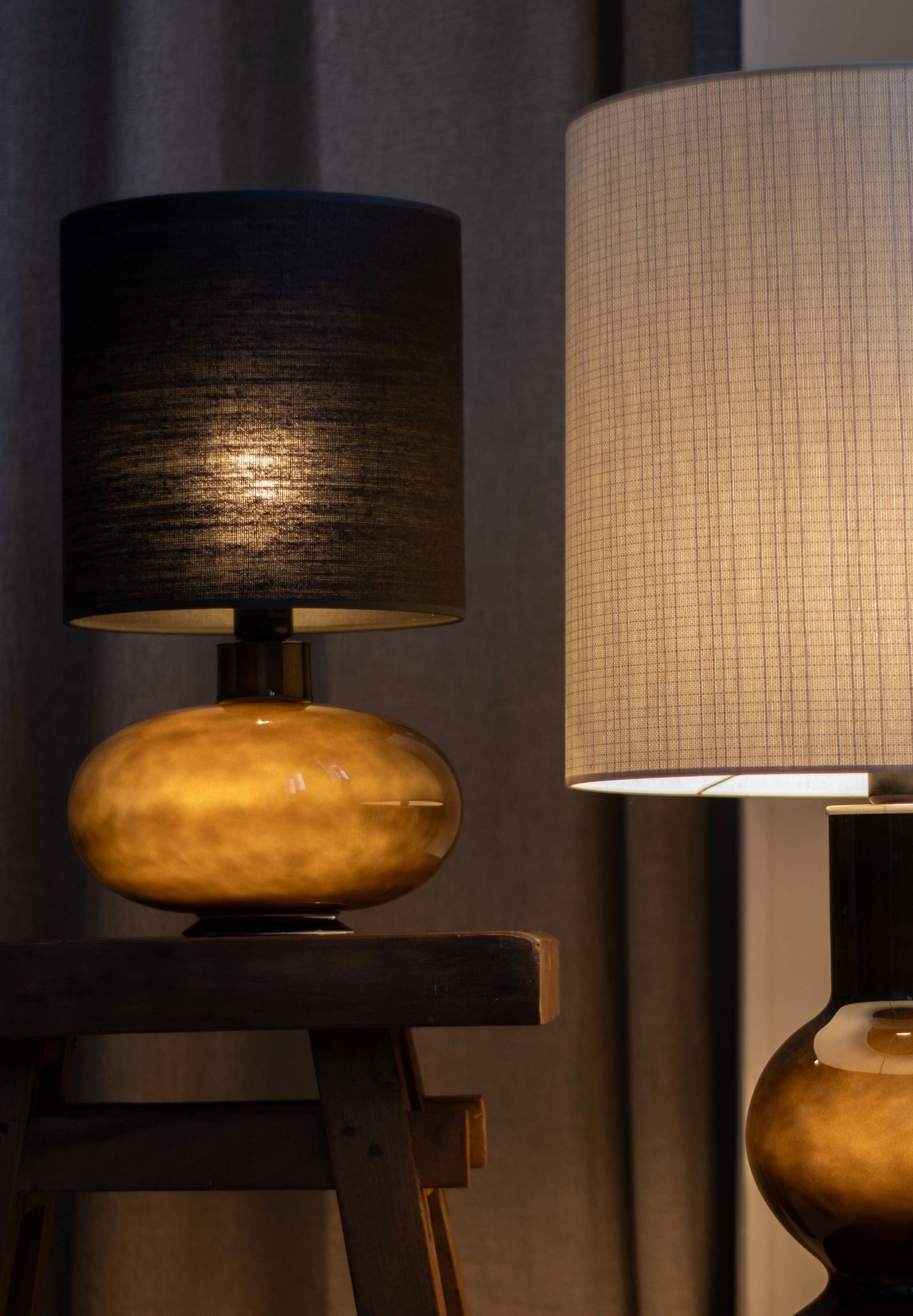 Den djupa, svarta basen har en stilfull, rundad design som ger en sofistikerad touch till alla rum. Den svarta lampskärmen bidrar med en stilfull belysning, perfekt för att skapa en inbjudande atmosfär i vardagsrummet, sovrummet eller hemmakontoret.