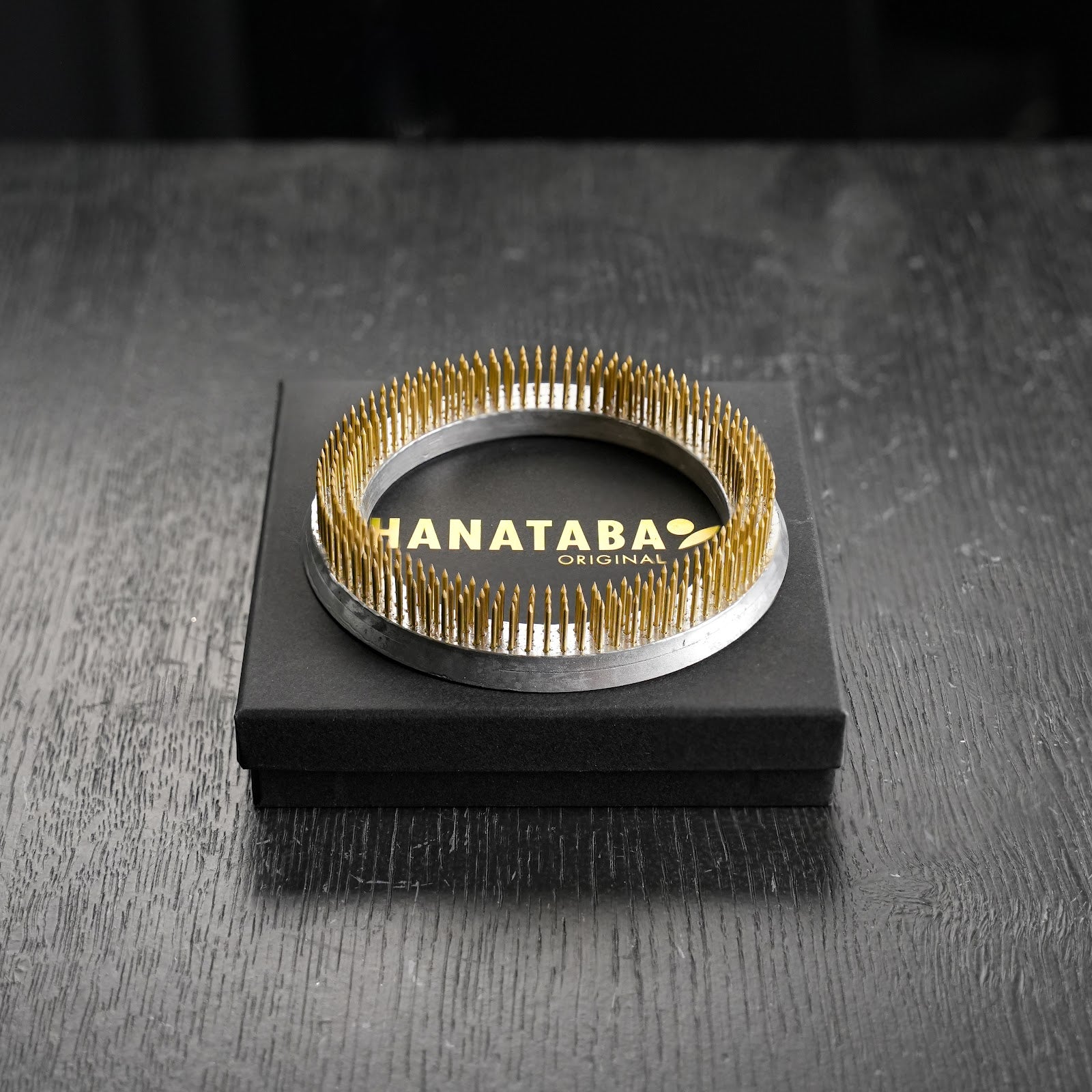 Hanataba Blomsterfakir Ring 12cm är ett unikt verktyg för att skapa imponerande och luftiga blomsterarrangemang. Denna blomsterfakir, även känd som kenzan på japanska, har en diameter på 12 cm och är designad för att hålla upp blommor och kvistar på ett stabilt och elegant sätt.