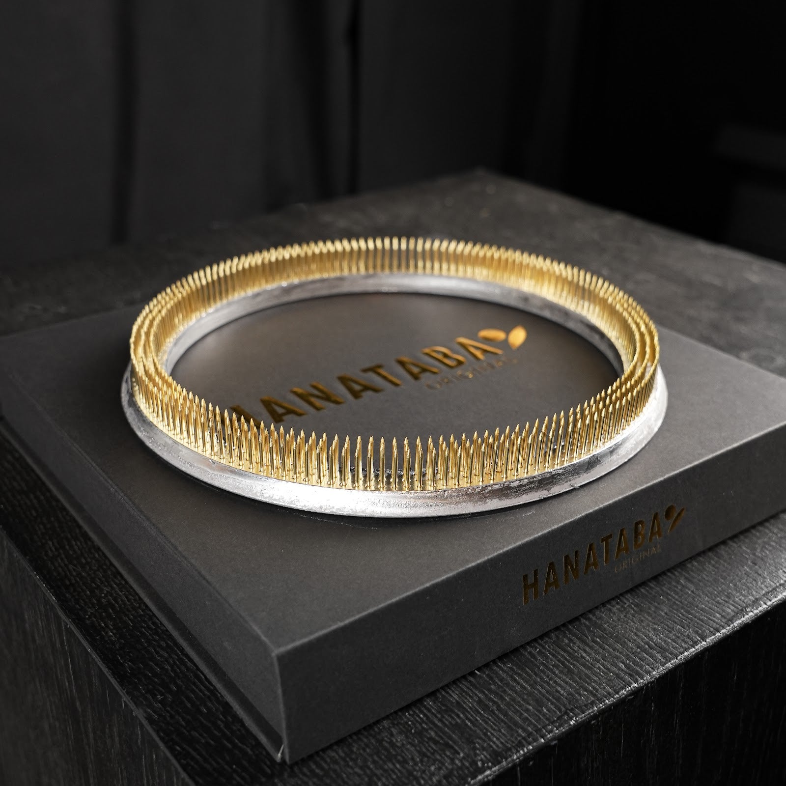 Världsunik fakir i form av en ring på hela 200 mm. Detta är vår egen modell och vidareutveckling av den populära fakiren. Skapa fantastiska arrangemang på höjden med luft i mitteln. Denna tungviktare på hela 1 kilo levereras i en lyxig pappersbox med magnetlås och figurskuret svart skum inuti för att ge den rätta, exklusiva känslan.
