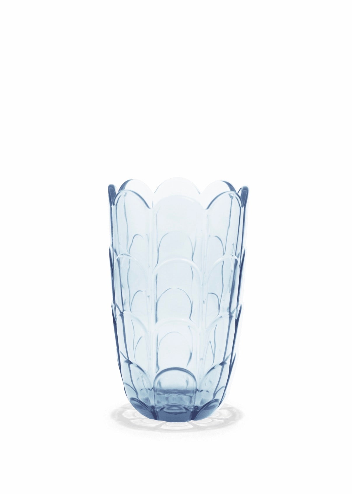 nspirerad av näckrosens mjuka former förenar Lily-serien romantik och modern design. Vasen i blåtonat, genomfärgat glas framhäver hela buketten och låter stjälkarna vila vackert mot de mjuka fördjupningarna längs kanten. Tillverkad i kvalitetsglas som tål vardagsanvändning.