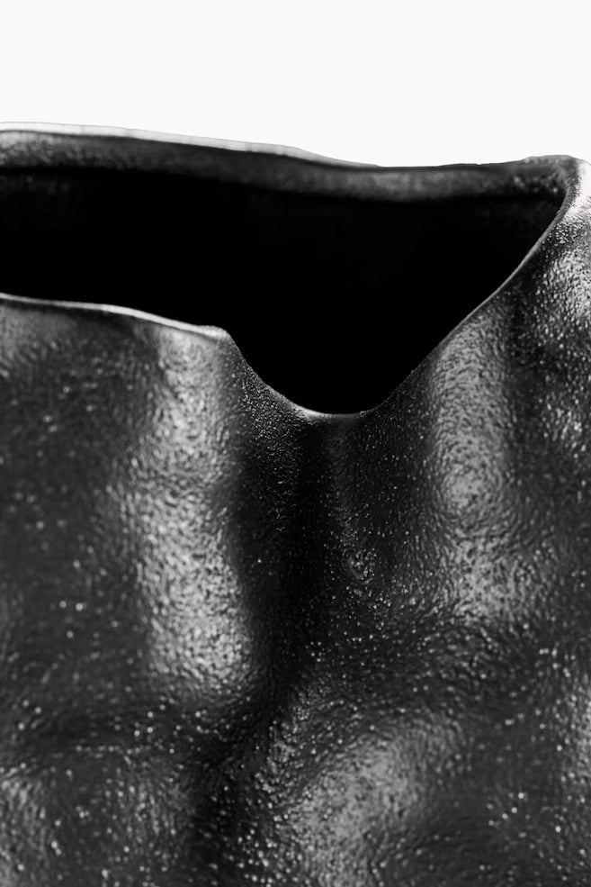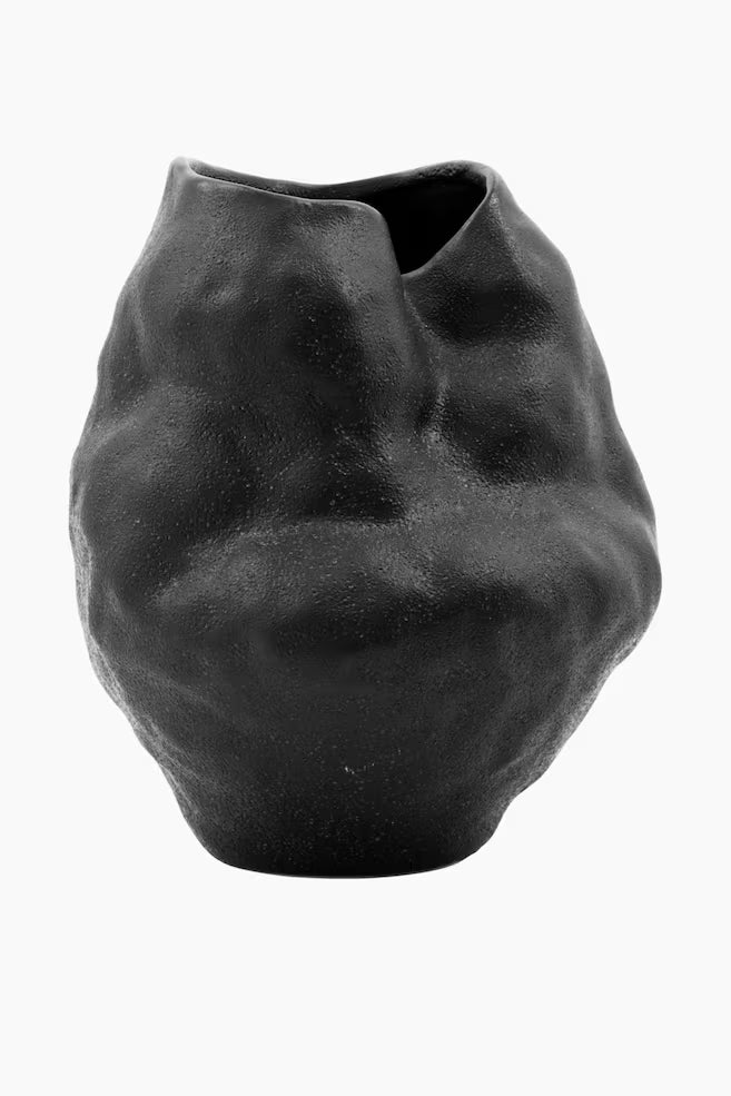 Skapa ett konstnärligt uttryck i ditt hem med Fomu vasen från House Doctor. Den är handgjord i stengods och har en organisk, skulptural form som ger varje exemplar sin egen unika karaktär. Den mattsvarta ytan tillför en modern och sofistikerad känsla som passar lika bra som solitär dekoration som med en bukett av säsongens blommor.