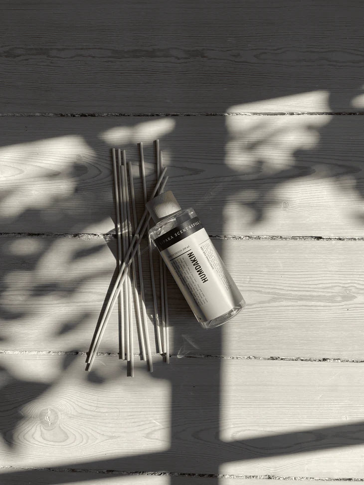 Humdakin refill till Vipaka doftpinnar gör det enkelt att förlänga livslängden på dina ursprungliga doftpinnar. Genom att fylla på oljan och byta ut stickorna kan du fortsätta njuta av den ljuvliga doften i glasflaskan.