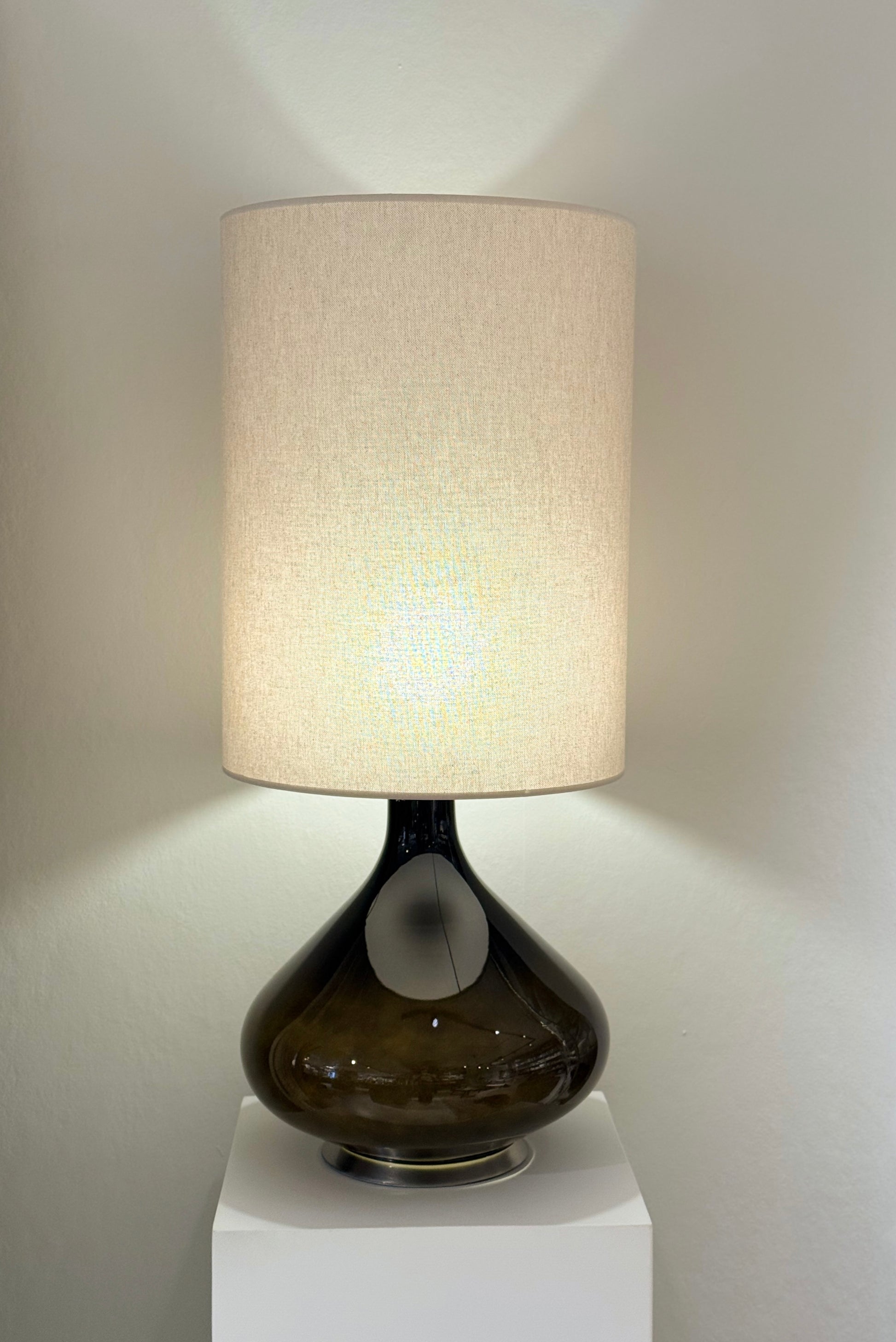 Lampfoten är handgjord i opalglas, vilket sprider ljuset jämnt och skapar en marmorerad effekt när lampan är tänd.