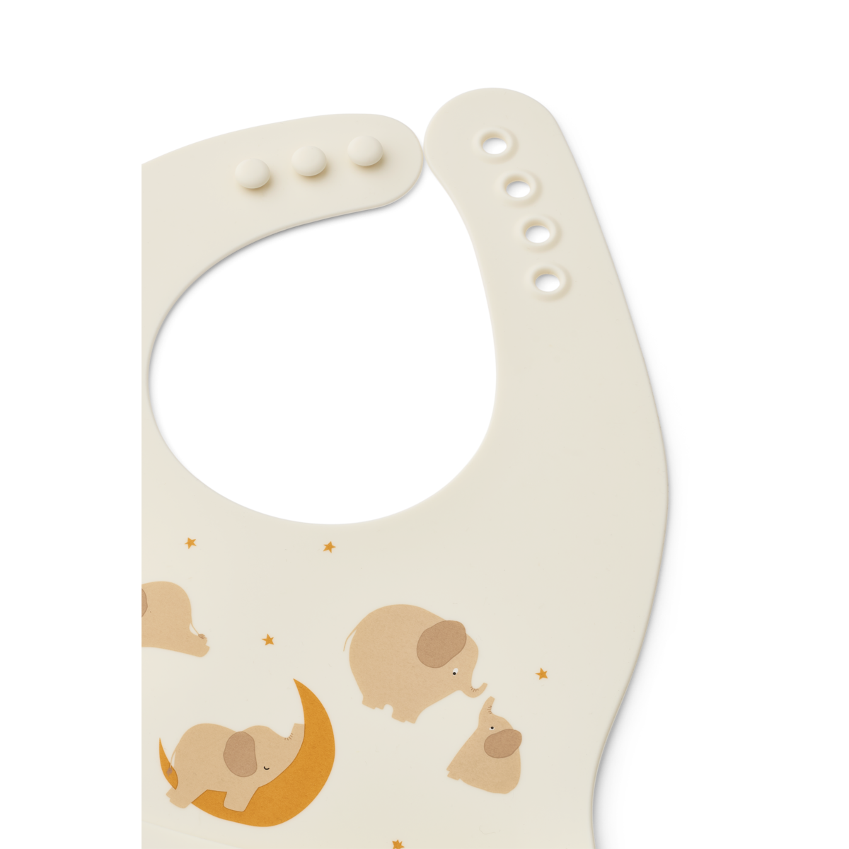 Liewood Ember Haklapp 2-pack – Elephant / Creme de la creme är ett praktiskt och stilrent set med två mjuka haklappar tillverkade av 100 % lätt silikon. Haklapparna har en uppsamlingsficka framtill som fångar upp spill och matrester, vilket gör måltiderna mindre kladdiga. Den tunna och flexibla silikonkvaliteten gör dem bekväma att bära även för de minsta. Med hjälp av knapp och hål på baksidan kan haklapparna enkelt rullas ihop och förvaras smidigt. Setet är ett perfekt val för små matälskare och tål diskmaskin för enkel rengöring.