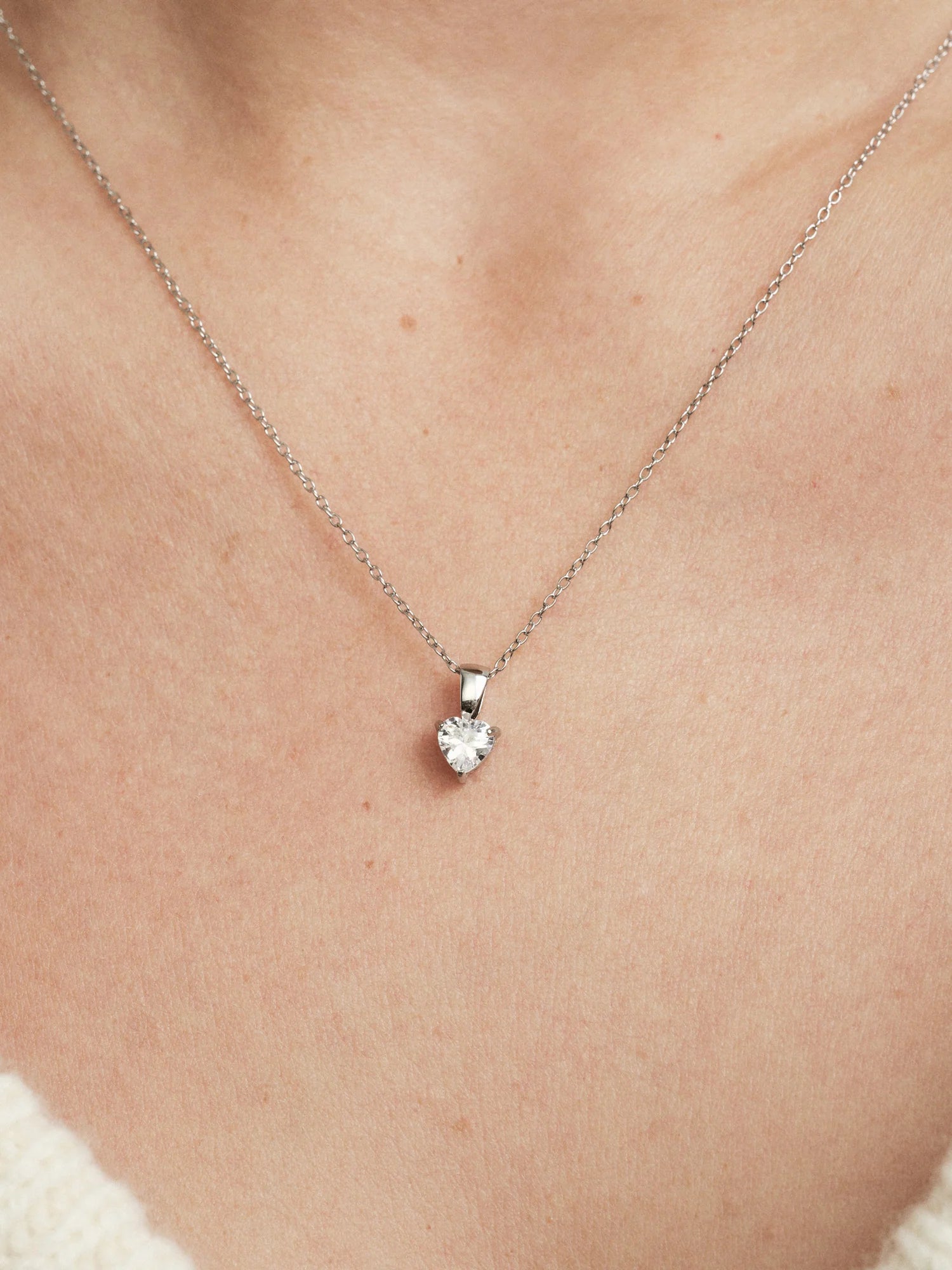 Bonne White Necklace har en hjärtformad vit sten fäst i en tunn kedja. Tillverkat i rostfritt stål med PVD-plätering är det både slitstarkt och vattentåligt, vilket gör att det behåller sin färg och glans över tid.
