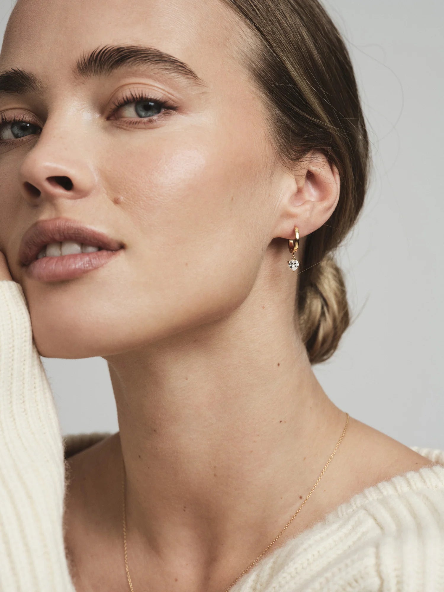 Bonne White Hoops är en nytolkning av våra klassiska hoops. De vita hjärtformade stenarna omgivna av guldfärgade ramar gör dem till en perfekt accessoar för alla tillfällen.