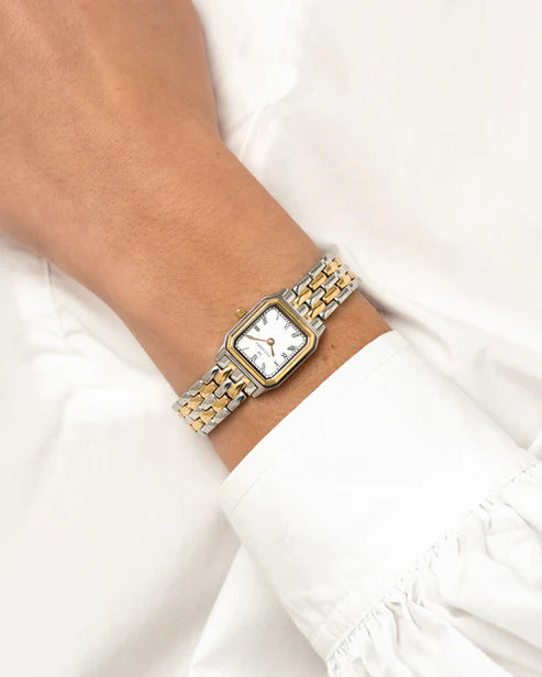 En klassiker med tidlös design. Klockans boett i rostfritt stål ramar in en urtavla med romerska siffror och kombineras med ett klassiskt länkarmband.