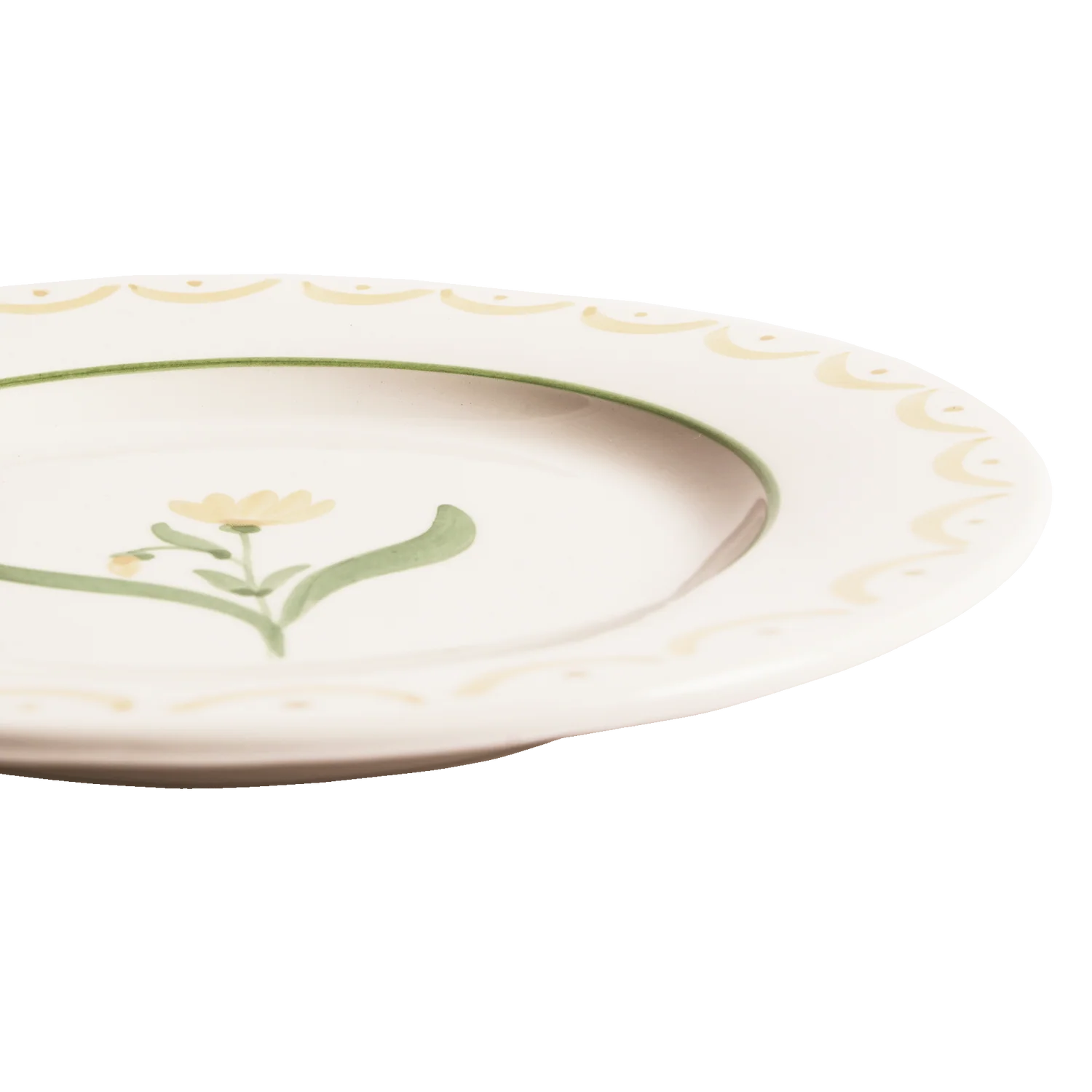 Tallriken är handgjord i lergods med traditionellt hantverk i Portugal och handmålad med ett blommotiv i rustik Cottagecore-stil, det perfekta valet för alla trädgårdsfester. Matcha med Cottage Flower-tallrik för en komplett bordsdukning!