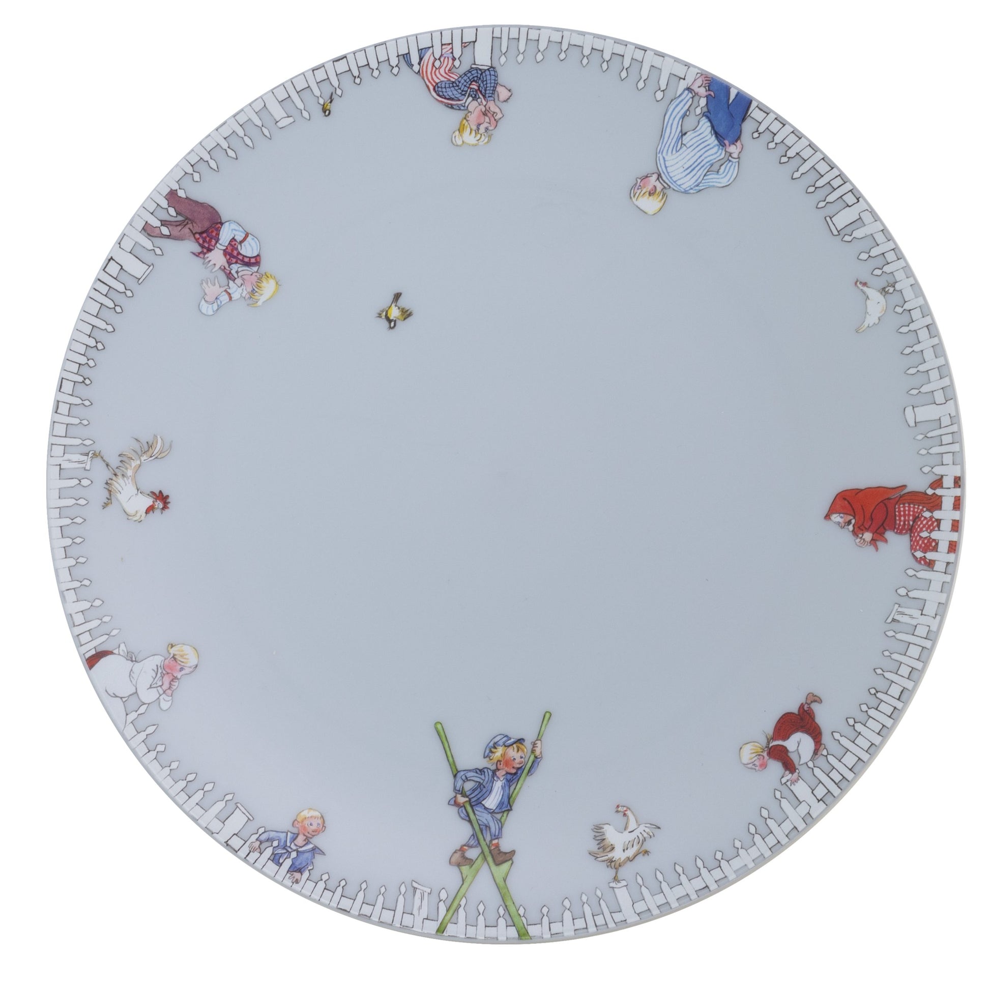 Tallriken kan diskas i diskmaskin, men bör placeras på den övre hyllan och rengöras vid max 50 grader. Den är däremot inte lämplig för användning i mikrovågsugn. För att bevara ytan bör vassa föremål och slipmedel undvikas, eftersom de kan orsaka skador.