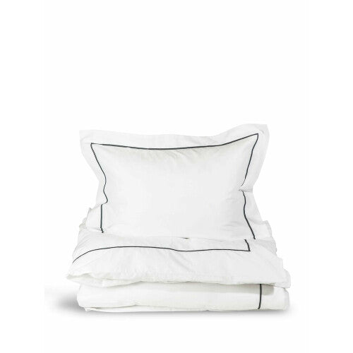 Låt hotellkänslan flytta hem. Påslakanet och örngottet är tillverkade i mjuk, 100% ekologisk bomull och bidrar definitivt till en god natts sömn. Designen är stilren och klassisk med en vit bas som pryds av svarta stygn, en sorts brodyr som kallas ”baratta”. Ett bäddset som håller i evighet, som är lika uppskattat att få som att ge bort. Säljs i set med påslakan och örngott. Finns i fler färger. Trådtäthet 144.