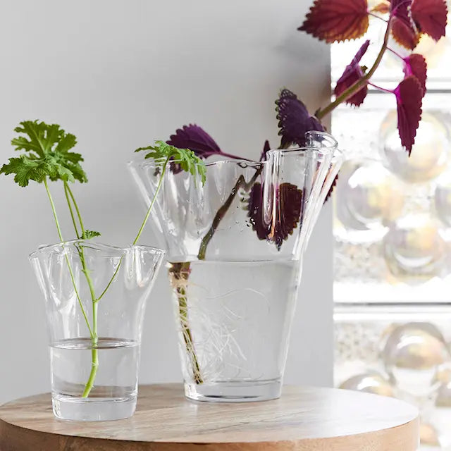 Som en nyutsprungen blomma vecklar den ut sina blad. Viva Vas flörtar med oss på ett förföriskt sätt - de organiska formerna och den diskreta pondusen. Lilla Viva vas är perfekt för sticklingar eller den lilla buketten, och den stora Viva vasen stoltserar som en statyett med och utan gröna blad och blomster. Ett svenskt original som har en självklar plats i alla hem.