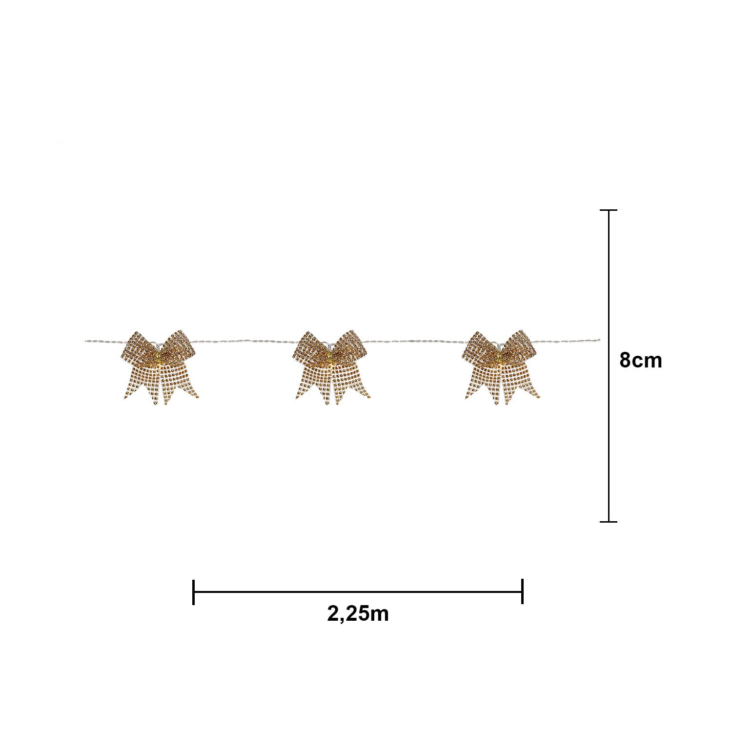 Batteridriven inomhusslinga med dekorationer i form av guldfärgade rosetter och 10 varmvita LED. Smakfull ljusslinga som passar lika bra till julgranen som bordsdekoration. Timerfunktion i batteridosan.