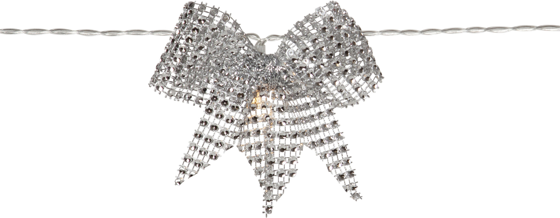Batteridriven inomhusslinga med dekorationer i form av silverfärgade rosetter och 10 varmvita LED. Smakfull ljusslinga som passar lika bra till julgranen som bordsdekoration. Timerfunktion i batteridosan.