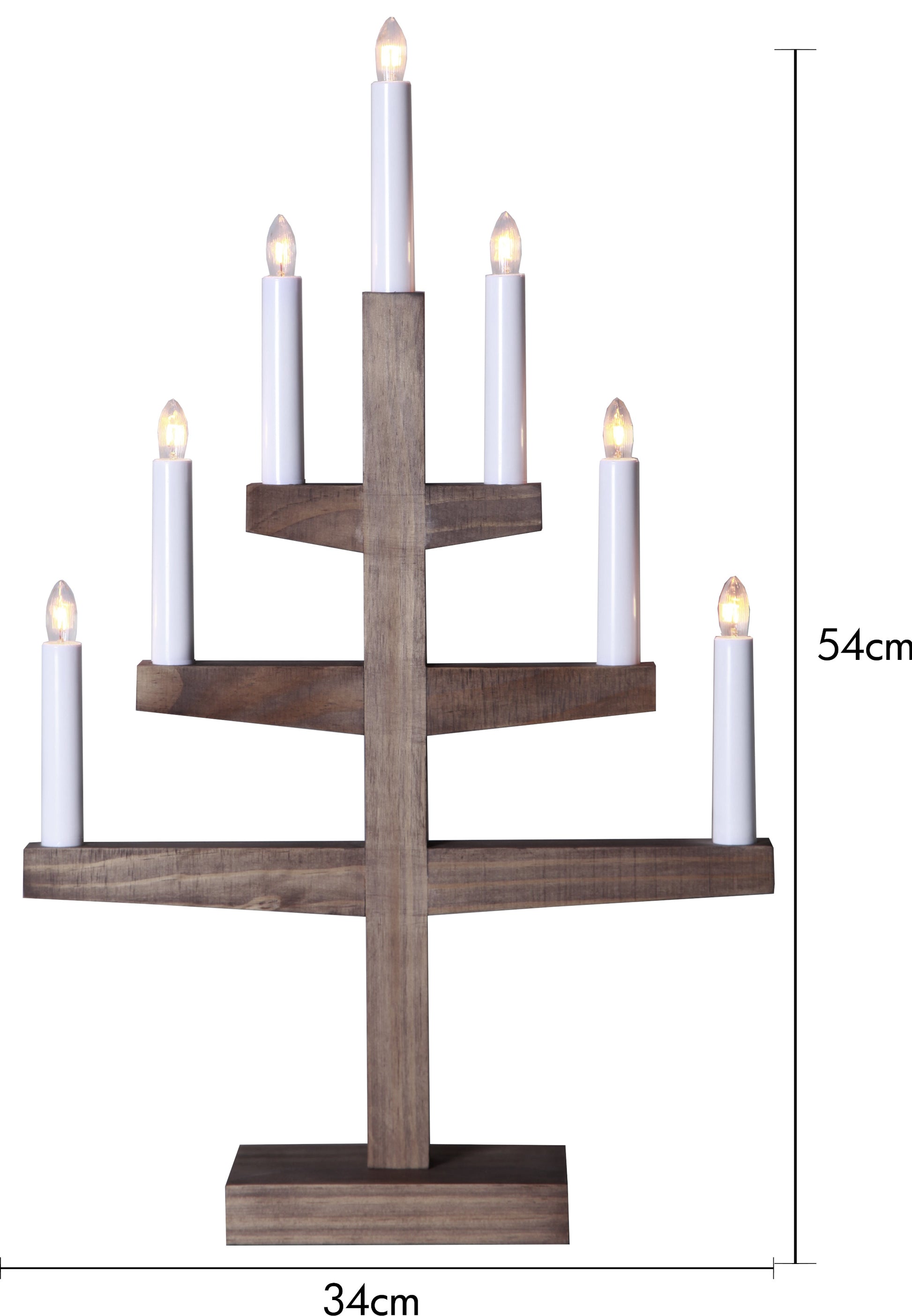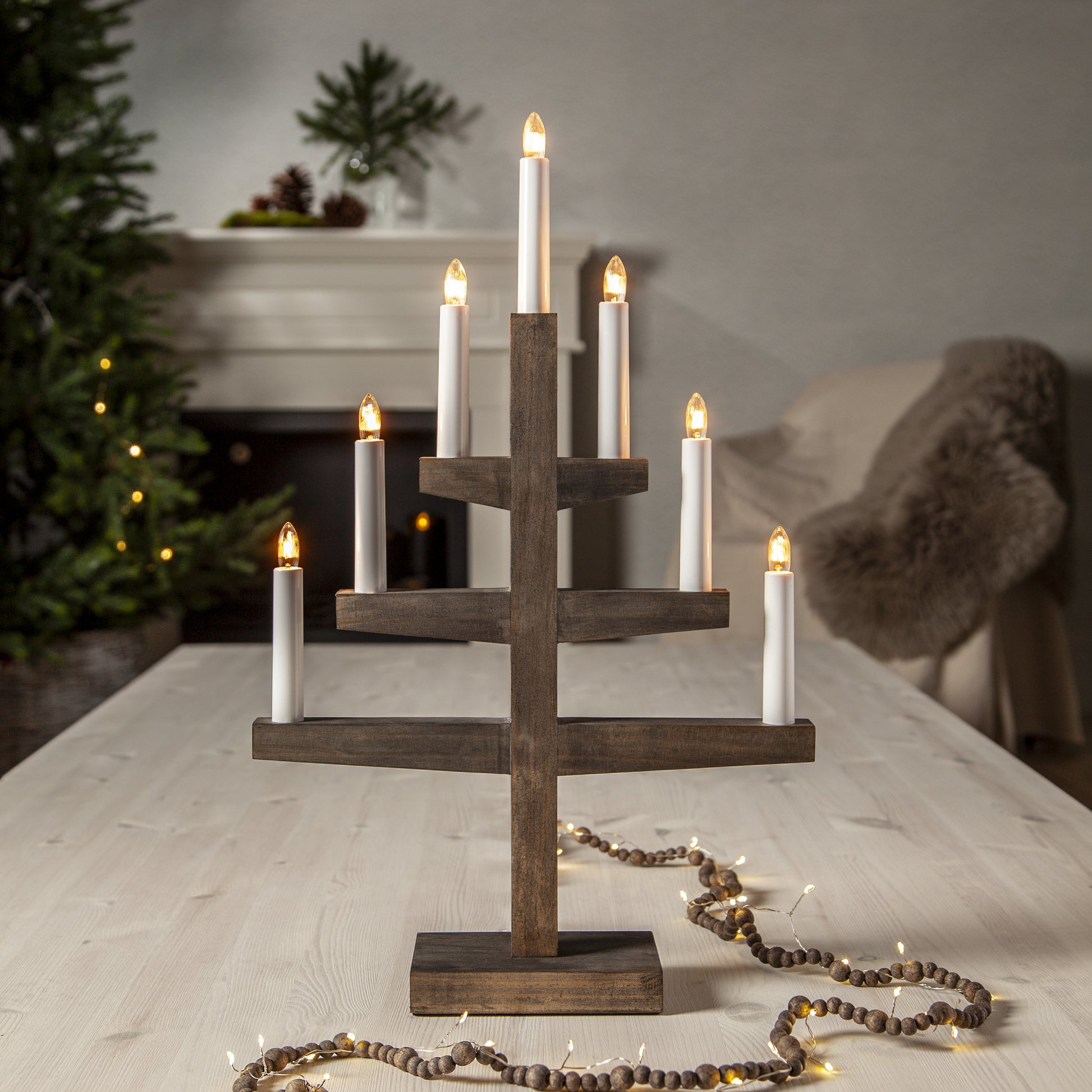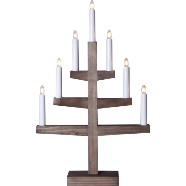 Brunbetsad träljusstake med 7 ljuskällor. Betsfärgen förekommer i både ljusa och mörka toner. Placera ljusstaken exempelvis i fönstret för att skapa en härlig adventstämning i hemmet. Ljusstaken har en kabellängd på 180cm. Denna produkt har FSC®-märkning.