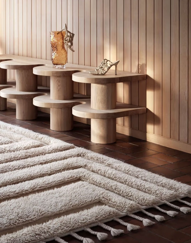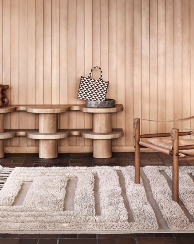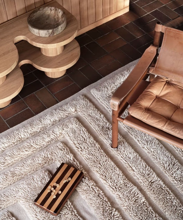 Mattans långa lugg ger den en otrolig mjukhet. Varje handtuftad Kask-matta är unik och skiljer sig något från de andra, vilket ger varje matta sin egen personlighet. Kask finns även i off-white.