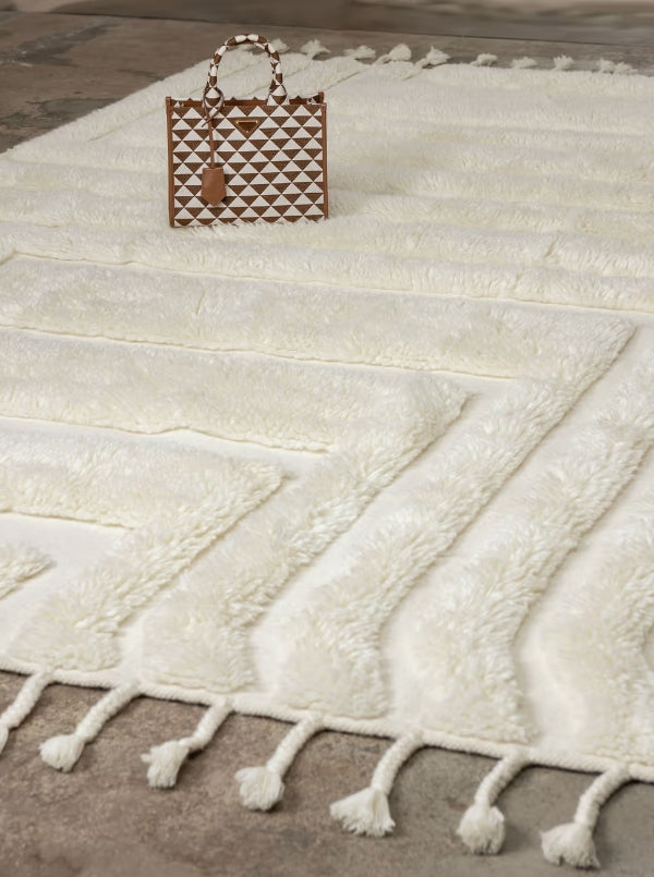 Kask är en oemotståndlig matta i beige, älskad av de stilmedvetna för sin tjocka, flätade frans.