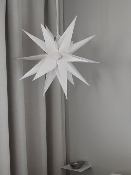 Sputnik 60 vit är en spektakulär stjärna med stjärnspetsar i alla riktningar, som ger en cool 3-dimensionell känsla. Precis som alla våra stjärnor är Sputnik omsorgsfullt vikt och limmad för hand. Limmet är speciellt framtaget för att klara det temperaturväxlande nordiska klimatet.