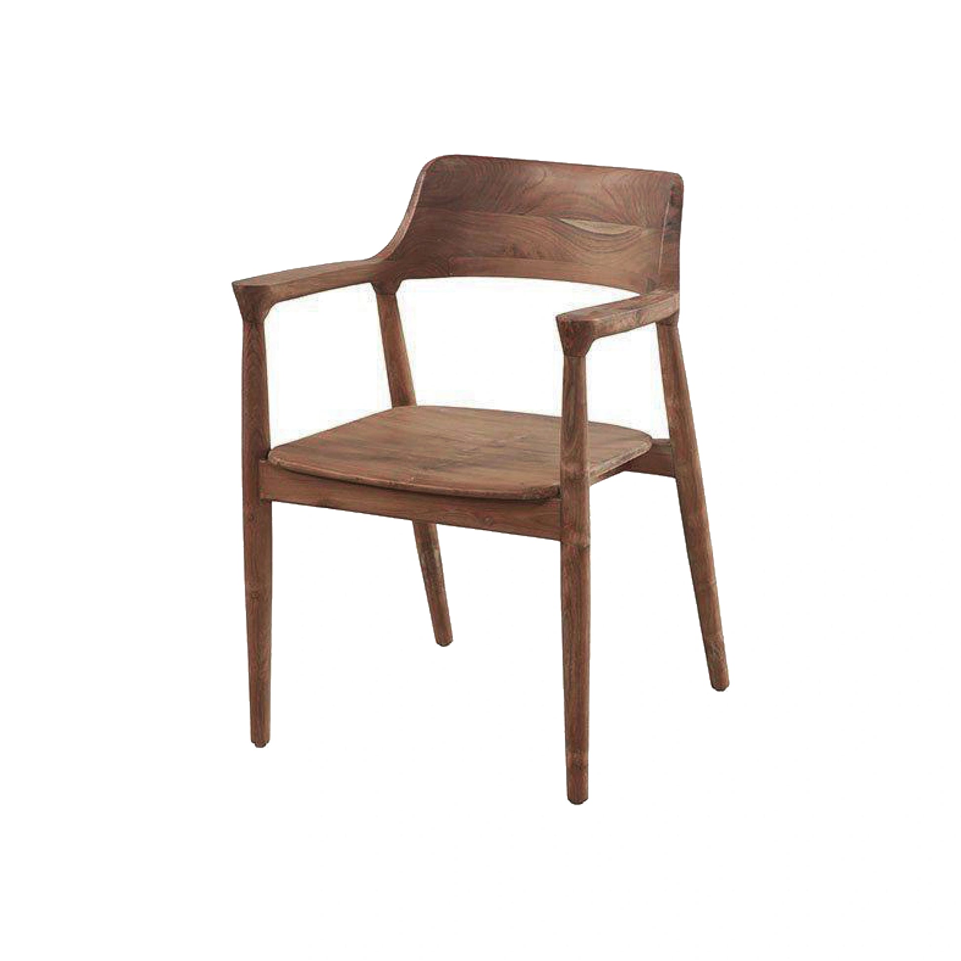 Den har armstöd för extra komfort och en minimalistisk form som påminner om klassisk design från mitten av 1900-talet. Med sina mått på 58x54x79 cm passar den perfekt vid matbordet eller som en fristående accentmöbel.